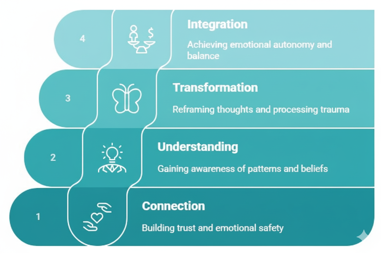 Integration & Closure – Ending therapy with tools for continued self-awareness and resilience.